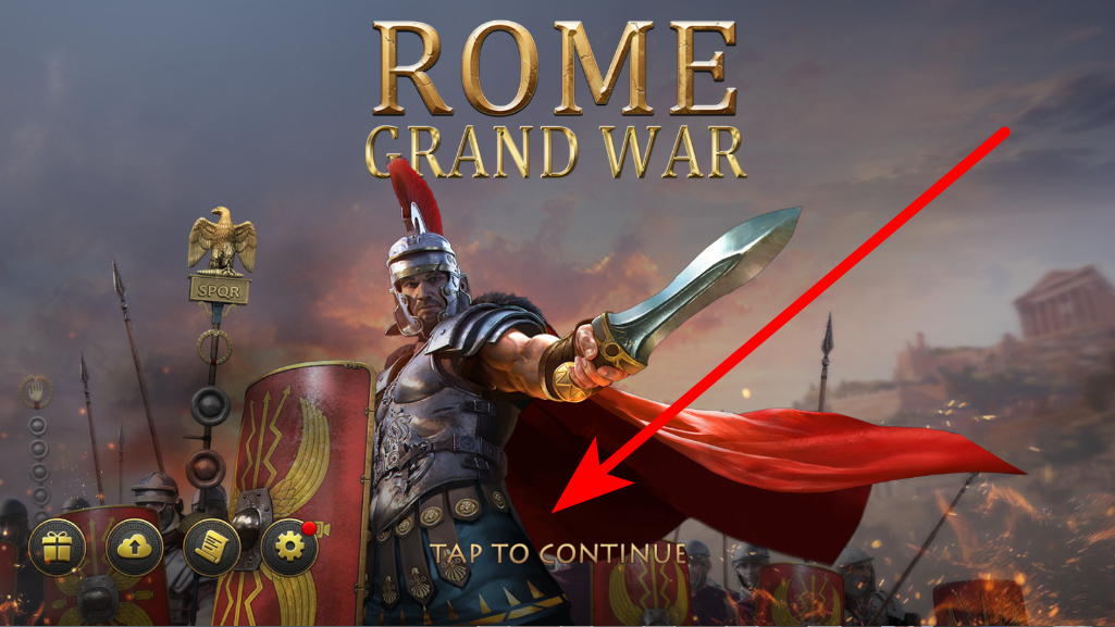 1、開始游戲后,點擊相應(yīng)位置開啟游戲進程,進入到充滿羅馬帝國元素的游戲世界,為后續(xù)的征戰(zhàn)與經(jīng)營做好準(zhǔn)備。