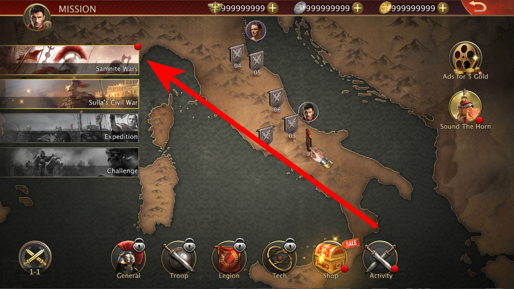 3、在地圖界面,會呈現(xiàn)出不同的戰(zhàn)役選項,選擇想要參與的戰(zhàn)役,如SamniteWars等,進入到具體的戰(zhàn)役場景中。