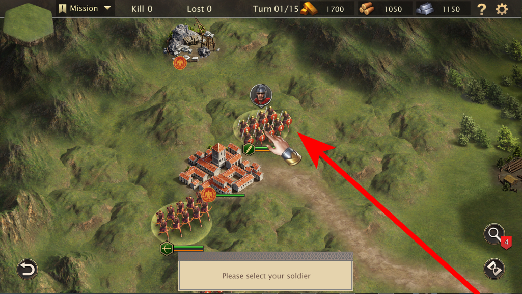 4、戰(zhàn)役開始后根據(jù)提示選擇士兵,指揮軍隊在戰(zhàn)場上行動,運用策略與敵方作戰(zhàn),逐步推進戰(zhàn)役,爭取勝利,壯大羅馬帝國。