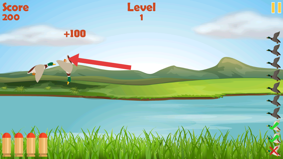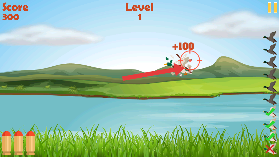 1、通過點(diǎn)擊屏幕或鼠標(biāo)左鍵瞄準(zhǔn)射擊,初期優(yōu)先瞄準(zhǔn)飛行速度較慢的鴨子,避免因追逐快速移動目標(biāo)導(dǎo)致頻繁脫靶,建立操作手感。