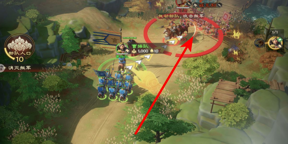 3、遇到敵軍時,按照提示拖動部隊,向叛軍發(fā)起攻擊,在攻擊過程中,要關(guān)注部隊的狀態(tài)與敵軍的情況,合理指揮部隊,力求消滅叛軍,取得戰(zhàn)斗勝利。