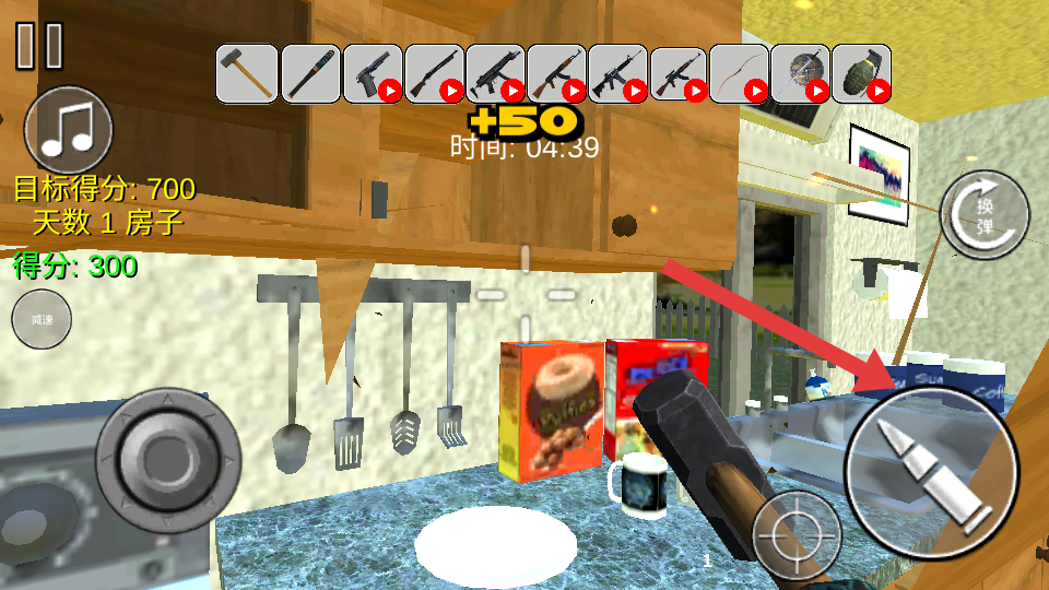 2、操控錘子破壞物品時,優(yōu)先選擇畫面中顯眼的物品如玻璃、櫥柜、盒裝食品等,破壞會有分?jǐn)?shù)+50獎勵,能快速積累得分。