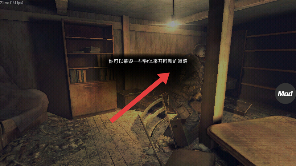 2、看到你可以摧毀一些物體來開辟新的道路的提示后,遇到阻擋的物體可嘗試著摧毀,開辟新的路徑。