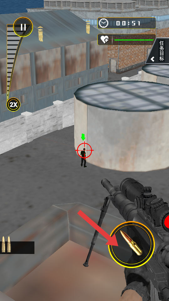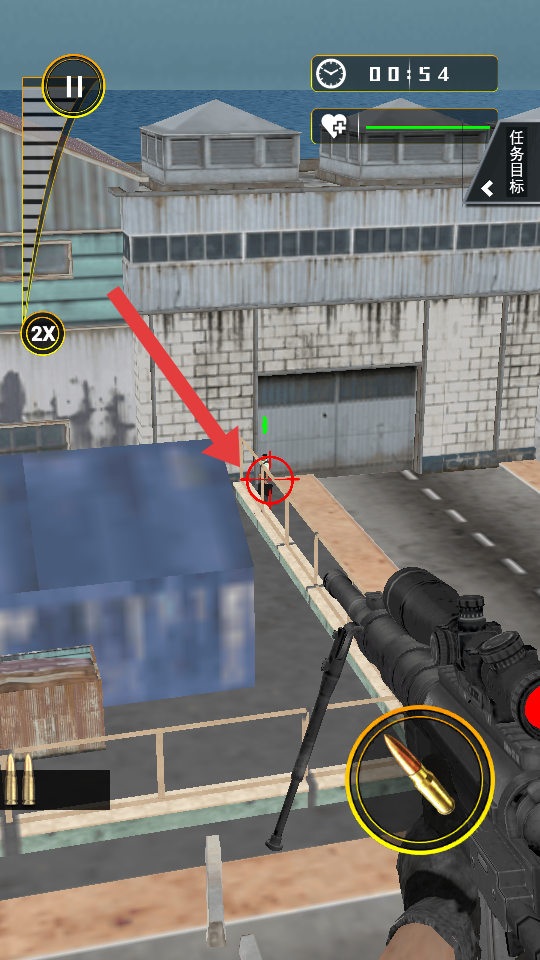 3、在限時(shí)內(nèi)快速完成目標(biāo)鎖定與射擊,避免因猶豫錯(cuò)過(guò)任務(wù)時(shí)限;若遭受攻擊導(dǎo)致生命值下降,立即調(diào)整狙擊位置。