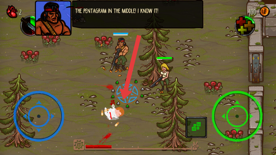 1、進入游玩的場景后,留意五角星位置的相關(guān)提示,石墻可當(dāng)掩護的物體,樹木花朵處小心藏怪。