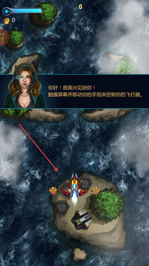 1、進入雷霆戰(zhàn)斗機游戲,根據提示操控戰(zhàn)機,熟悉移動操作。