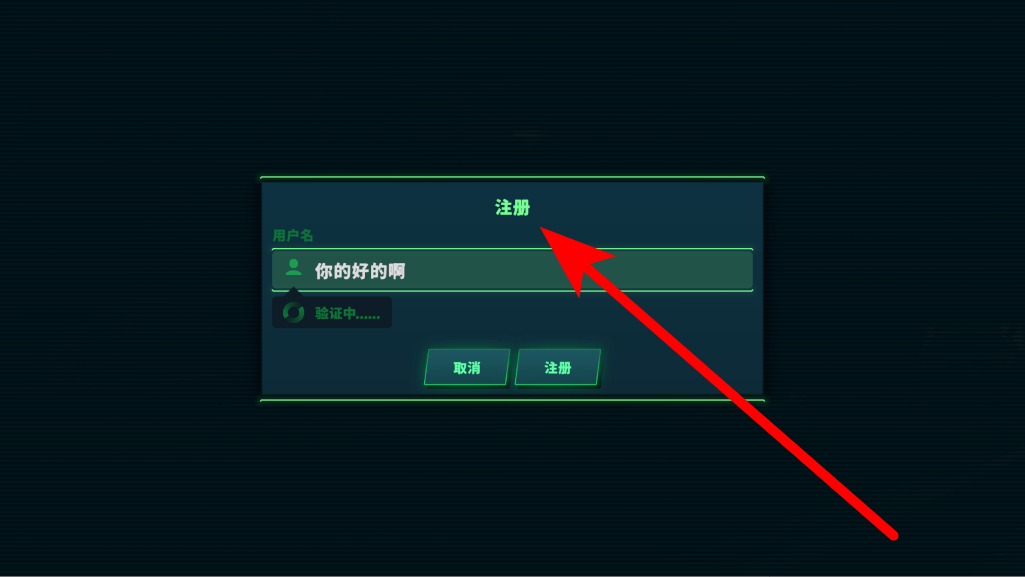 1、進(jìn)入游戲界面后,會看到登錄相關(guān)選項(xiàng),若要注冊賬號,點(diǎn)擊注冊按鈕,在注冊界面輸入用戶名,待驗(yàn)證完成后,點(diǎn)擊注冊,嘗試創(chuàng)建游戲賬號。