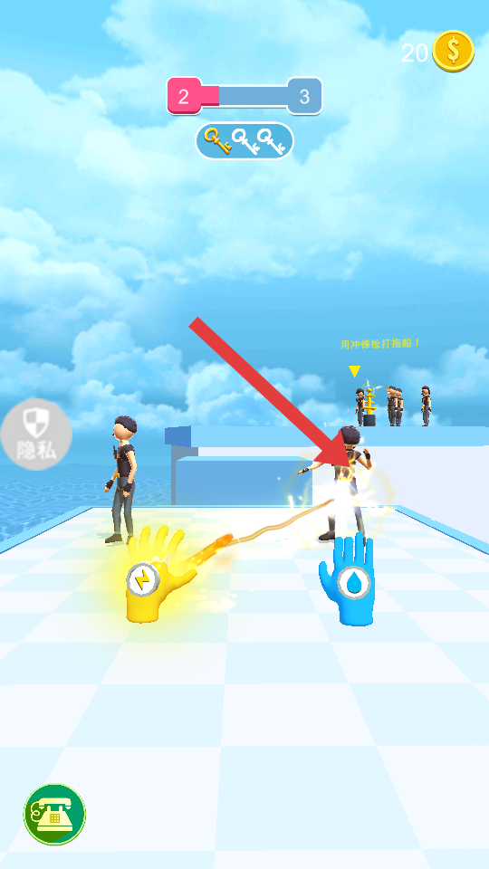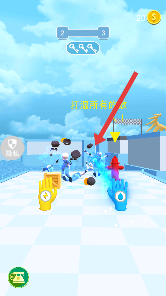 2、先用水滴手套打濕敵人,再用閃電手套攻擊,可提升效率,同時(shí)要把握好攻擊時(shí)機(jī),在敵人靠近未攻擊時(shí)出手。