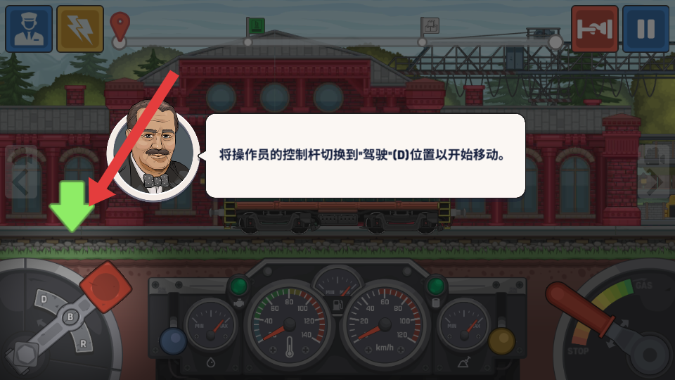 2、將操作員的控制的桿切換到駕駛D的位置,讓火車開始向前移動,這是啟動火車行駛的關(guān)鍵操作的步驟。