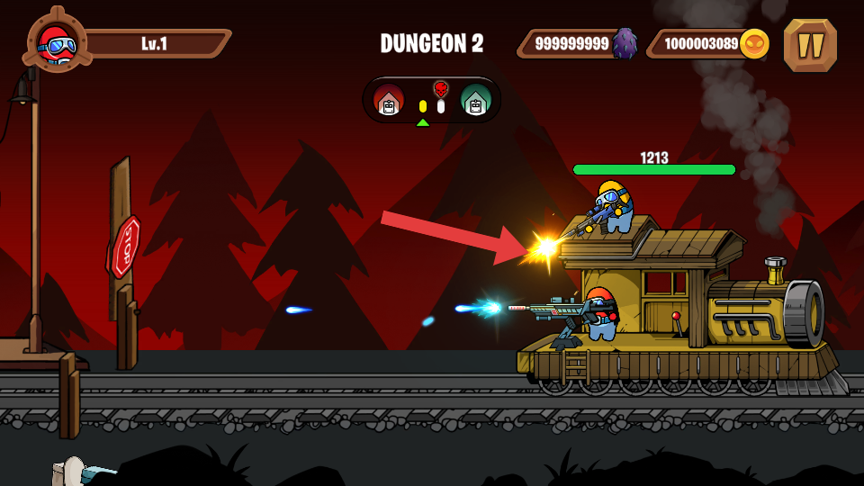 1、進(jìn)入DUNGEON2場景后,操控火車上的角色射擊,利用武器開啟冒險戰(zhàn)斗,可借助載具推進(jìn)關(guān)卡。