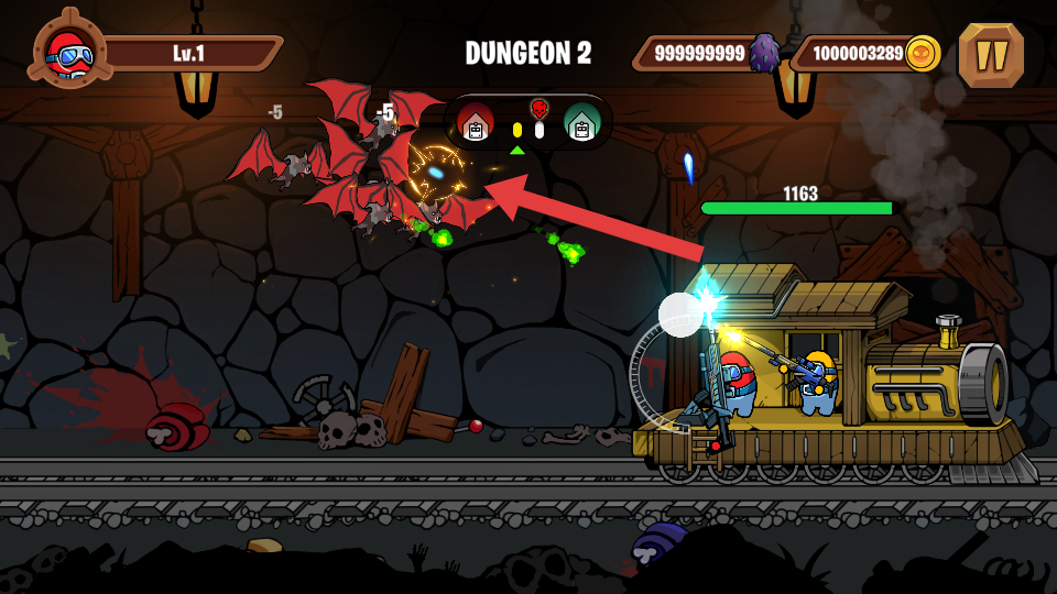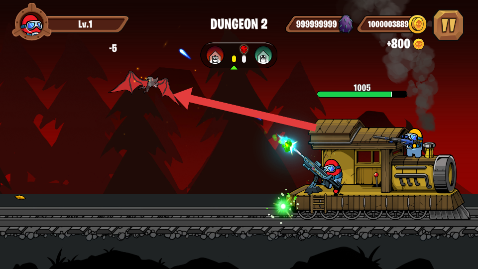 4、消滅蝙蝠等敵人時,關(guān)注金幣積累,同時留意載具或角色的生命值,保障戰(zhàn)斗續(xù)航以推進(jìn)關(guān)卡。
