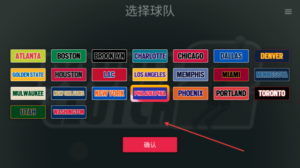 1、在選擇球隊界面,從眾多球隊中選擇自己心儀的隊伍,選好后點擊確認。