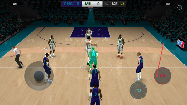 4、成功拿到球后,根據(jù)場上局勢,點擊傳球按鈕將球傳給隊友,或點擊其他進攻按鈕進行投籃、突破等操作,努力贏得比賽勝利。