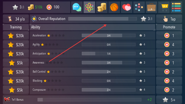 3、進(jìn)入訓(xùn)練界面,查看各項(xiàng)能力值,如加速能力等,花費(fèi)資金進(jìn)行訓(xùn)練提升能力,同時(shí)留意整體聲譽(yù)變化。