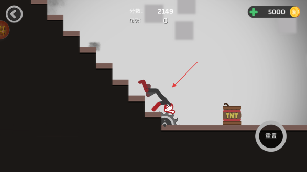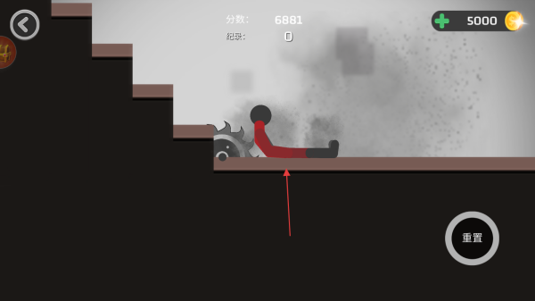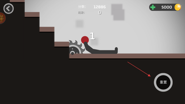 4、若火柴人行動(dòng)結(jié)果不理想,點(diǎn)擊右下角重置按鈕,重新布置道具再次嘗試獲取更高分?jǐn)?shù)。