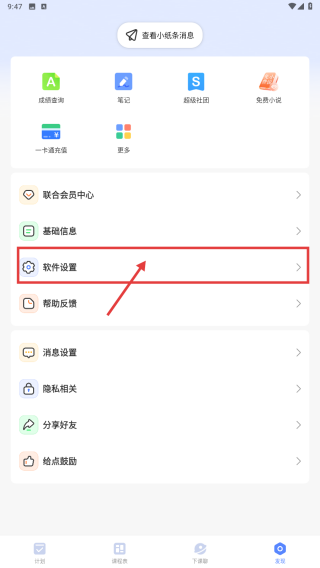 2、在個(gè)人設(shè)置頁(yè)面,點(diǎn)擊軟件設(shè)置選項(xiàng),進(jìn)入軟件設(shè)置界面。