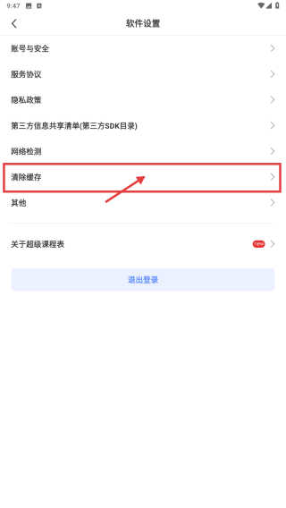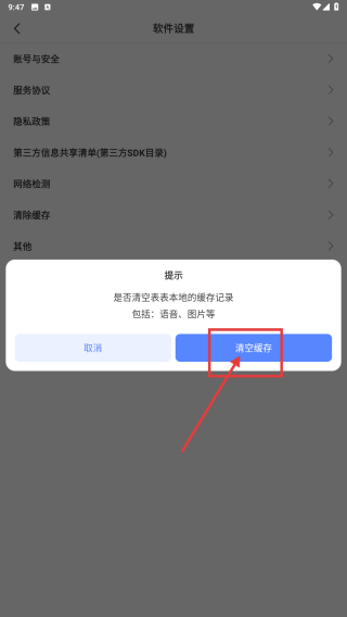 3、在軟件設(shè)置界面,找到清除緩存選項(xiàng)并點(diǎn)擊,觸發(fā)緩存清除提示。