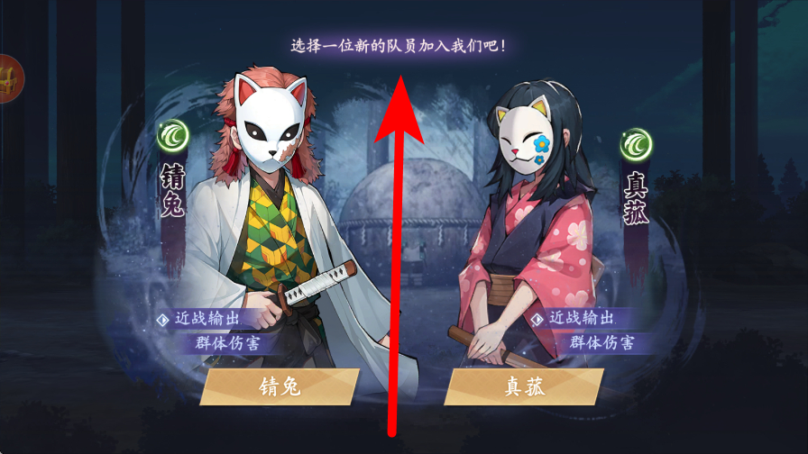 4、最后選擇隊(duì)友,在相應(yīng)界面,可從錆兔、真菰等角色中選擇一位新的隊(duì)員加入隊(duì)伍,不同隊(duì)友有不同的戰(zhàn)斗特點(diǎn),為后續(xù)戰(zhàn)斗提供助力。