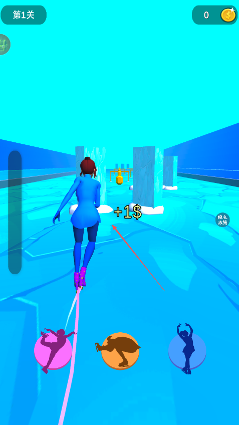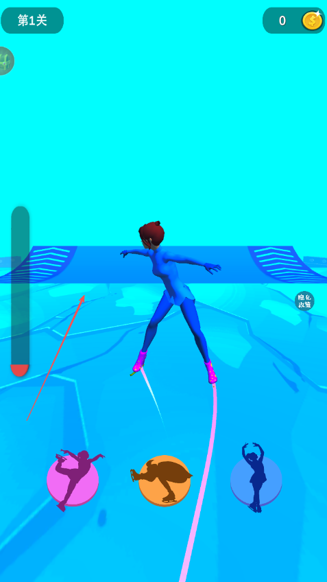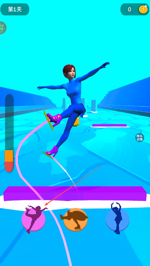 2、遇到不同滑冰姿勢圖標時,點擊對應的姿勢按鈕,讓角色做出相應滑冰動作。
