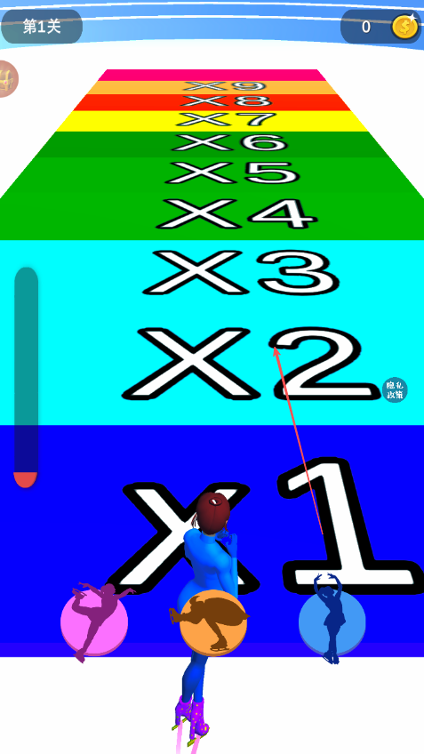 3、按照賽道指引,保持姿勢正確,順利通過各種路段,注意避開障礙物。
