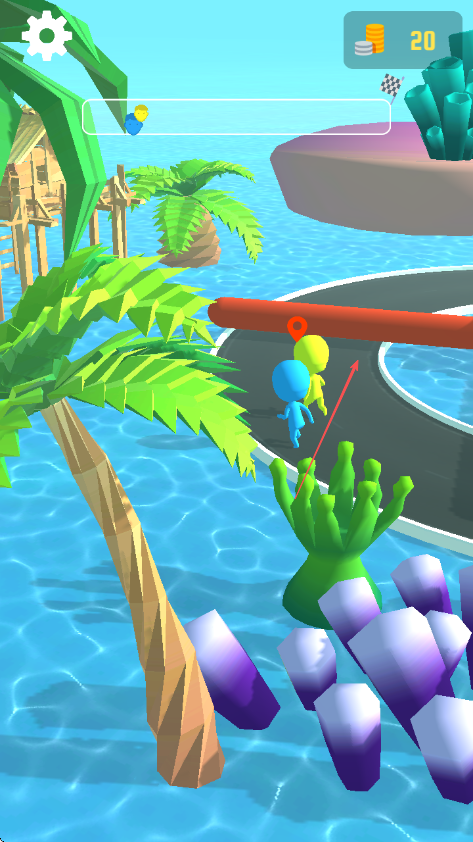 2、多樣水上賽道:涵蓋淺灘、水上平臺、珊瑚礁區(qū)域等十幾種地圖,賽道地形差異明顯,部分賽道包含水下潛行段,豐富跑酷體驗。