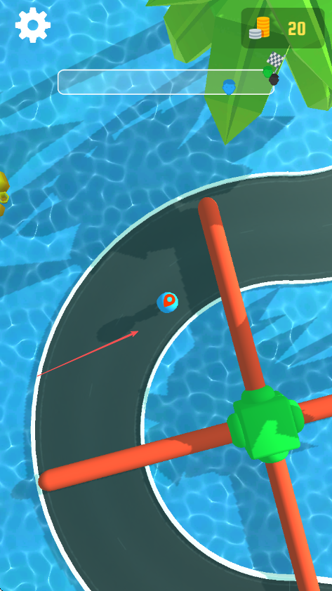 3、在彎道處,注意調(diào)整小人的前進方向,保持在賽道上,不落入水中。