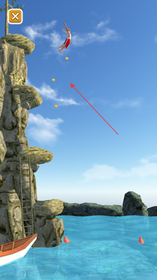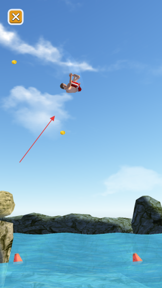 4、讓角色保持姿態(tài),朝箭頭方向,以合適姿勢(shì)入水,完成跳水。