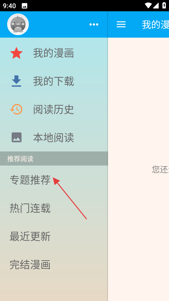 1、進(jìn)入我的漫畫頁面,點(diǎn)擊左上角菜單按鈕,展開側(cè)邊欄。