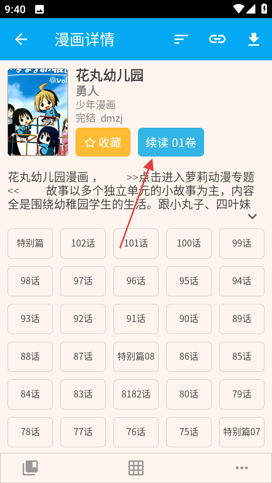 4、進(jìn)入漫畫詳情頁后,若要繼續(xù)閱讀,點(diǎn)擊續(xù)讀01卷按鈕即可。