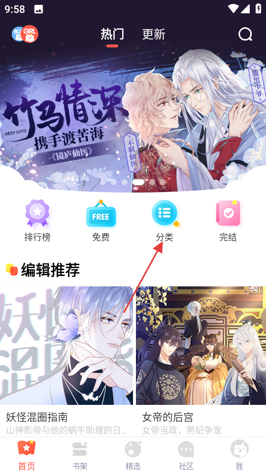 1、分類(lèi)查找漫畫(huà):打開(kāi)軟件后進(jìn)入分類(lèi)板塊,根據(jù)自身喜好選擇仙俠、都市等題材分類(lèi),在列表中瀏覽并挑選漫畫(huà)。