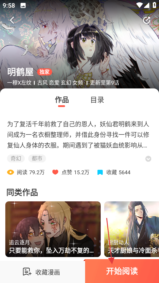 3、進(jìn)入明鶴屋詳情頁(yè)后,點(diǎn)擊開(kāi)始閱讀按鈕,即可開(kāi)始閱讀該漫畫(huà)。