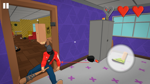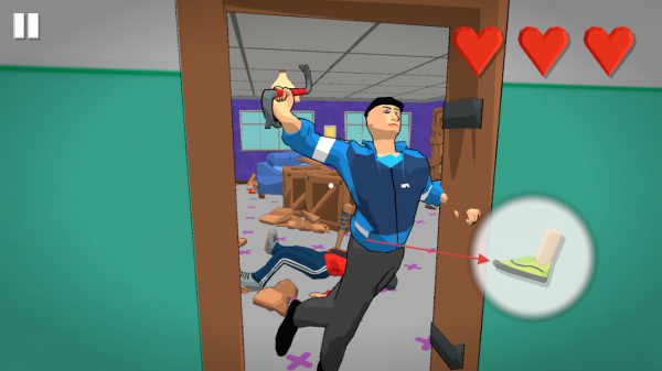 1、游戲開始,通過右下角虛擬按鈕操控角色進(jìn)入房間,會(huì)看見敵人已經(jīng)倒地。