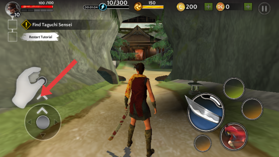 1、在場景中移動時,通過箭頭指向的虛擬搖桿,操控角色的移動方向,朝著目標地點前進,開啟后續(xù)的探索與戰(zhàn)斗。