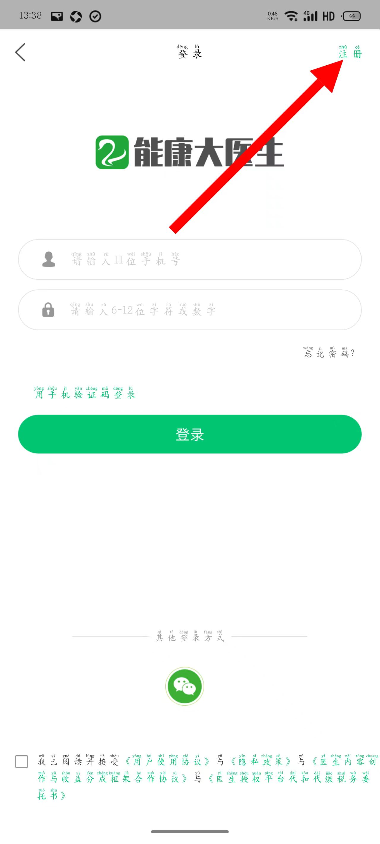 3、在登錄頁面,點(diǎn)擊右上角注冊(cè)選項(xiàng)。