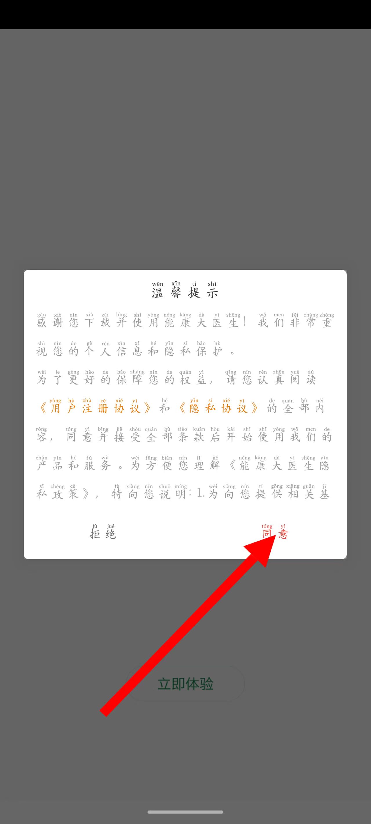 1、打開APP,在溫馨提示彈窗中點(diǎn)擊同意。