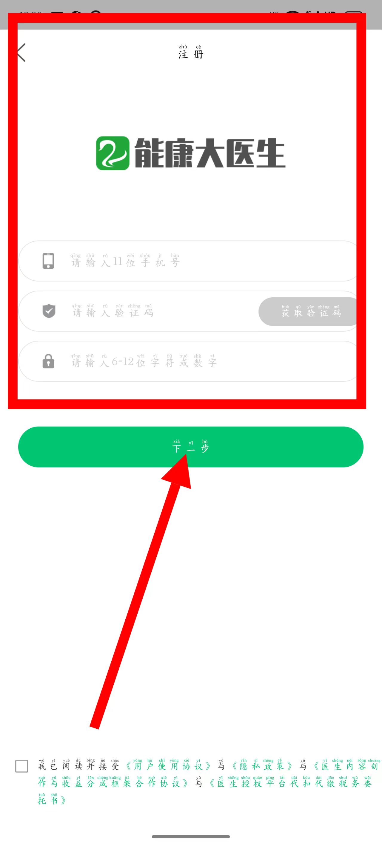4、依次填寫手機(jī)號(hào)碼后,點(diǎn)擊下一步,按提示完成注冊(cè)。