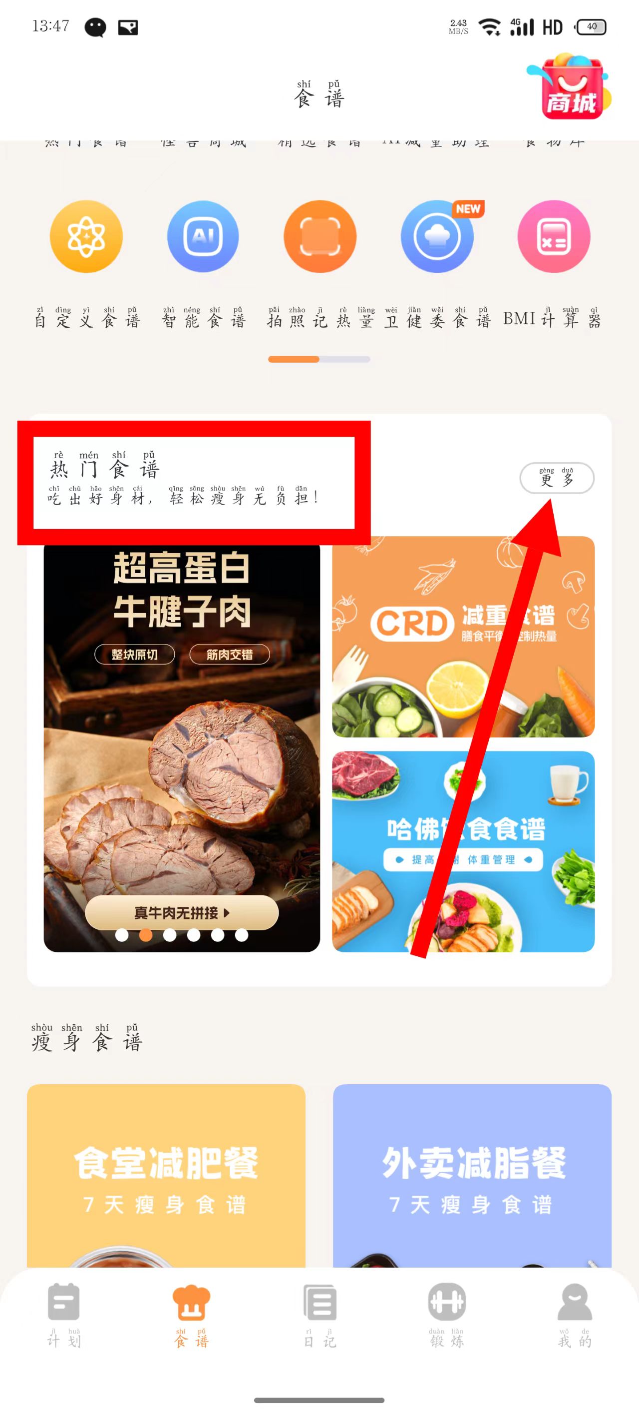 2、在食譜頁面,找到熱門食譜板塊,點擊更多。