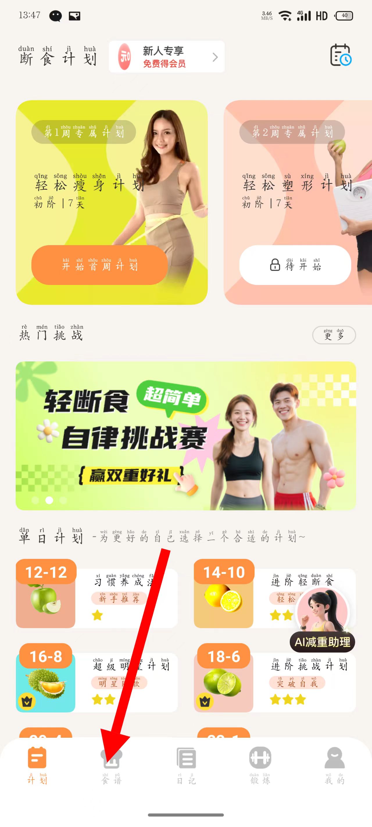 1、打開怪獸輕斷食軟件,點擊底部食譜選項。
