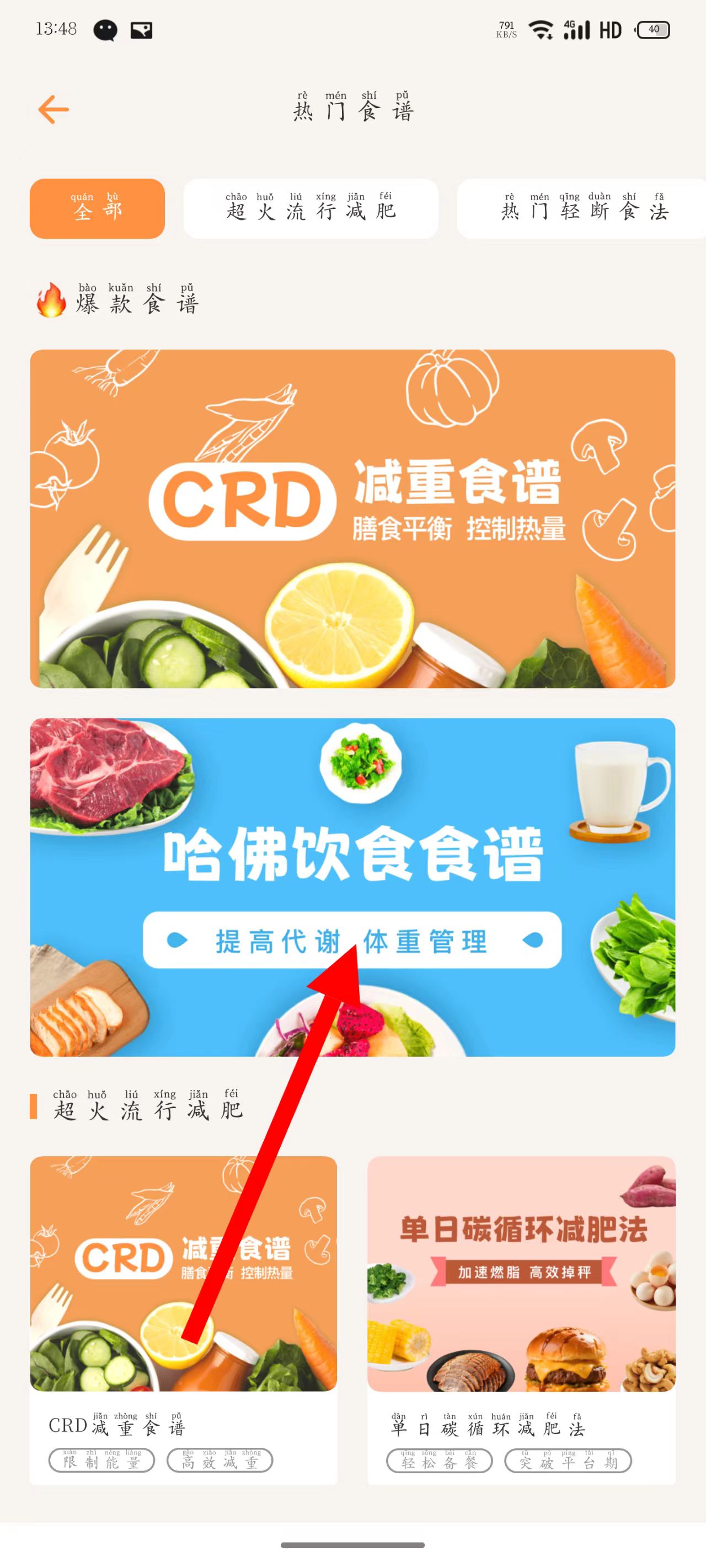 3、進入熱門食譜頁面后,選擇哈佛飲食食譜。