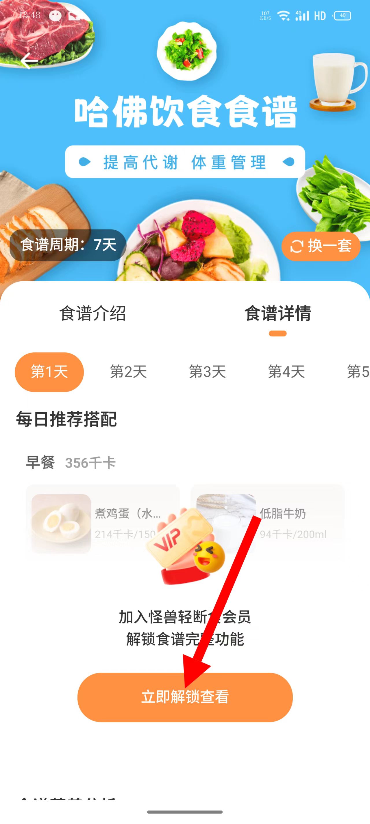 4、點擊立即解鎖查看,即可查看該食譜的詳細內(nèi)容。