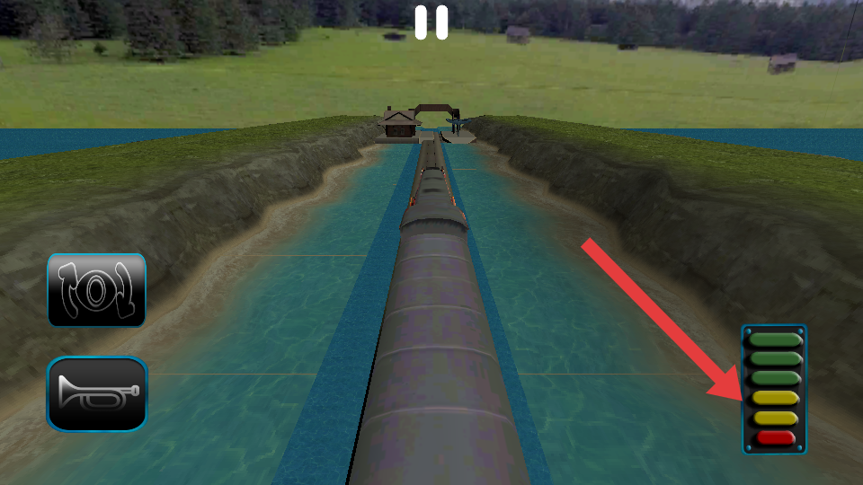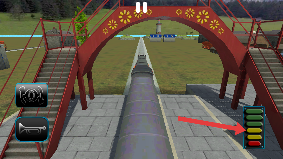 4、在不同場景如水域軌道段行駛時,持續(xù)關(guān)注右側(cè)指示燈,結(jié)合場景特點(diǎn)調(diào)整火車速度。