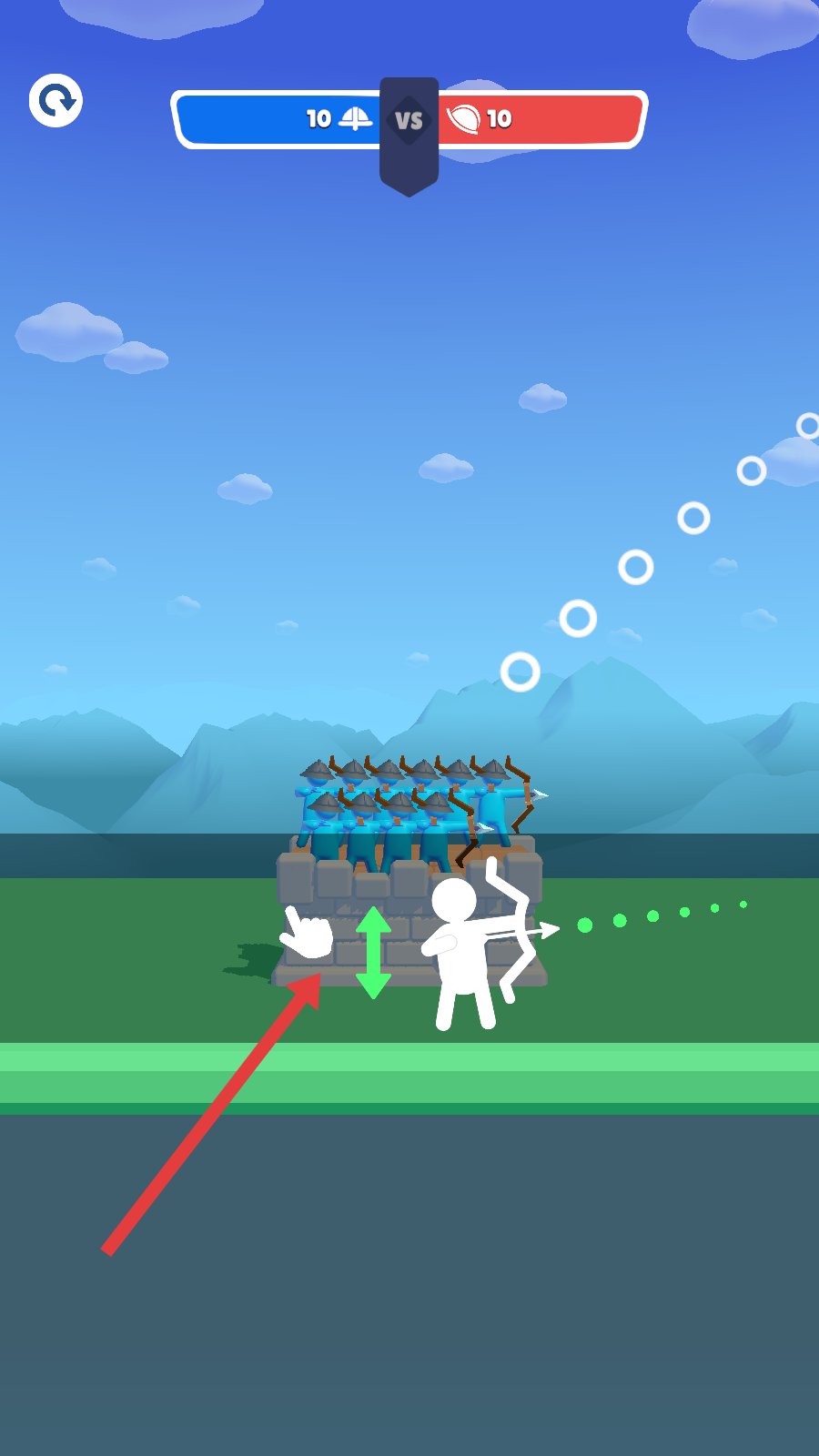 2、攻擊操作方式:對戰(zhàn)過程中,操控角色調(diào)整弓箭發(fā)射的角度與力度,瞄準(zhǔn)敵方單位后完成攻擊,通過精準(zhǔn)操控實現(xiàn)高效打擊,抵御敵人進(jìn)攻擊潰敵方防御。