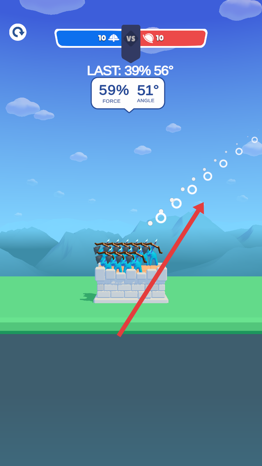 2、調(diào)整弓箭的發(fā)射力度和角度,精準(zhǔn)瞄準(zhǔn)敵方目標(biāo),通過合理的彈道計算,對敵方造成了有效的傷害。
