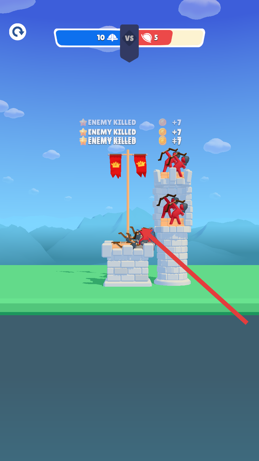 4、在戰(zhàn)斗中不斷消滅敵人,獲取金幣獎勵,用于升級建筑和弓箭手,進(jìn)一步強化己方戰(zhàn)力,贏得勝利。
