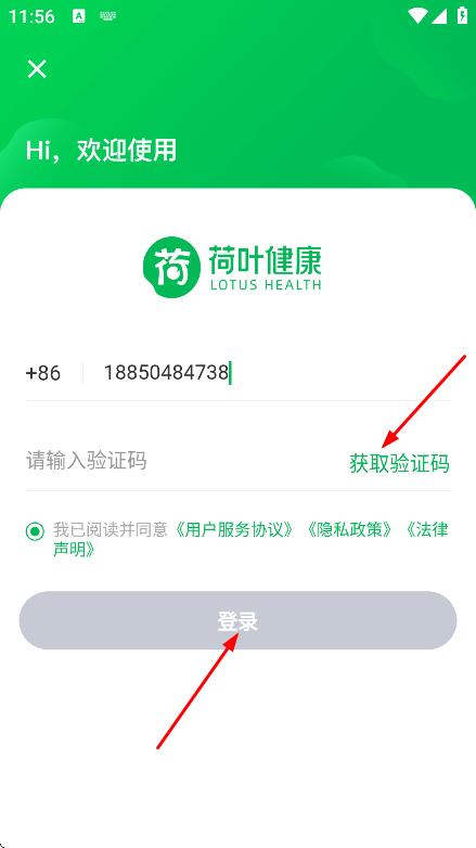4、輸入手機(jī)號(hào),點(diǎn)擊獲取驗(yàn)證碼,輸入驗(yàn)證碼后點(diǎn)擊登錄,完成登錄。