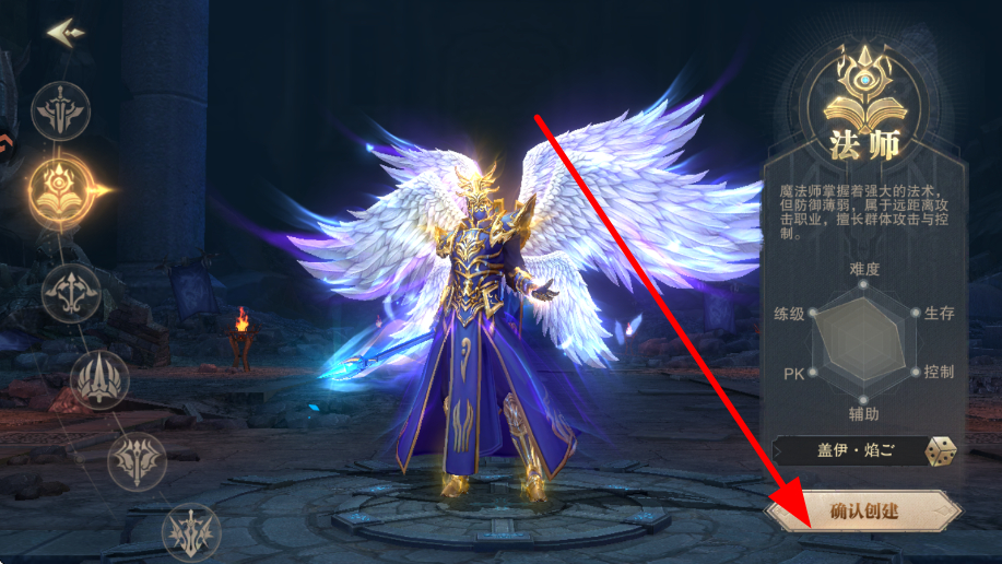1、進入游戲后,創(chuàng)建法師等職業(yè),了解特點后,點擊確認創(chuàng)建,就能開啟屬于自己的冒險之旅,不同職業(yè)發(fā)展與戰(zhàn)斗方式有所不同。
