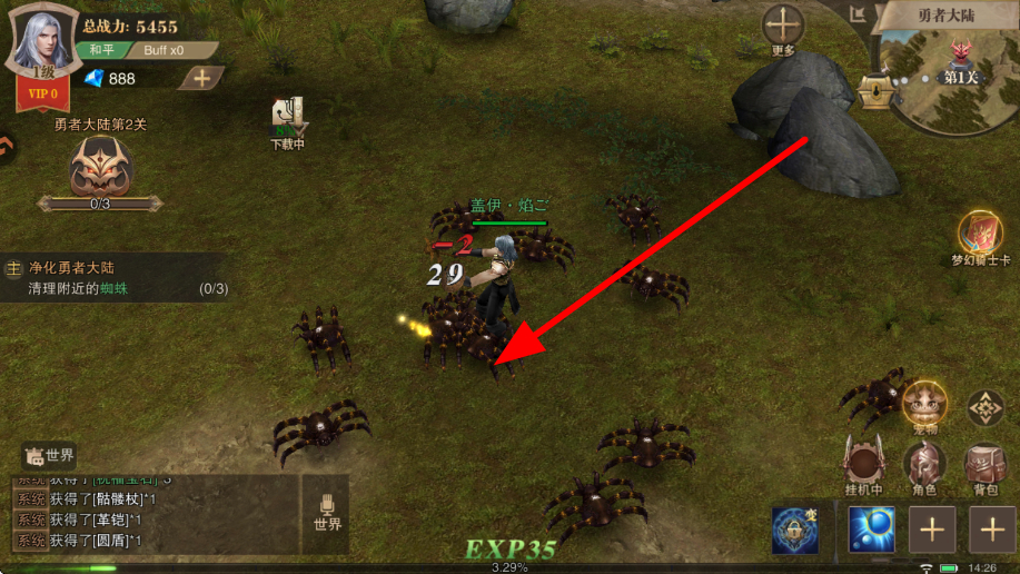 3、玩家在接受清理蜘蛛等戰(zhàn)斗任務后,然后前往指定區(qū)域,與怪物展開戰(zhàn)斗,通過攻擊怪物獲取經驗與裝備,提升角色的戰(zhàn)斗力。