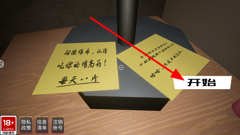 1、開啟游戲后,會(huì)看到一些帶有提示性的便簽,仔細(xì)查看這些便簽內(nèi)容,能獲取關(guān)于在這個(gè)恐怖世界生存的關(guān)鍵信息,為后續(xù)行動(dòng)提供指引。