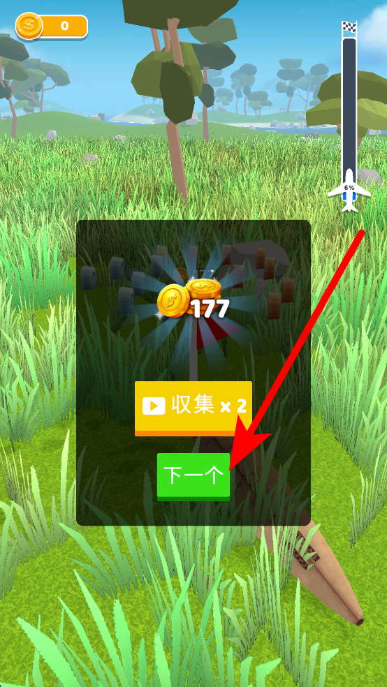 3、在當(dāng)前環(huán)節(jié)的金幣收集等任務(wù)完成后,界面會出現(xiàn)下一個關(guān)卡按鈕,點(diǎn)擊該按鈕,即可進(jìn)入新的環(huán)節(jié),開啟新的游玩內(nèi)容。