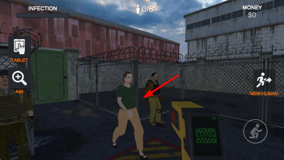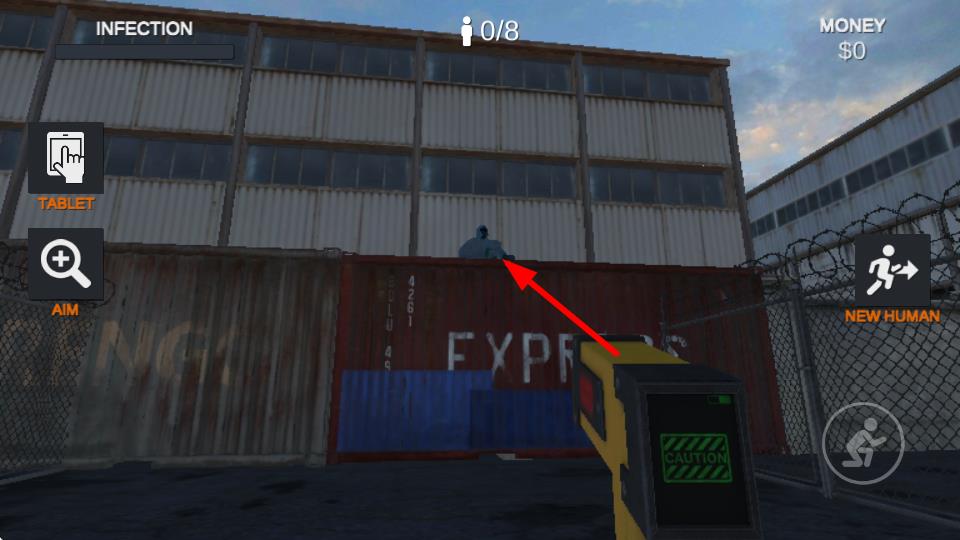 2、觀察場景中的目標(biāo)人物,通過瞄準(zhǔn)設(shè)備鎖定目標(biāo),處理潛在感染風(fēng)險的關(guān)鍵步驟,不同位置人物逐一排查。
